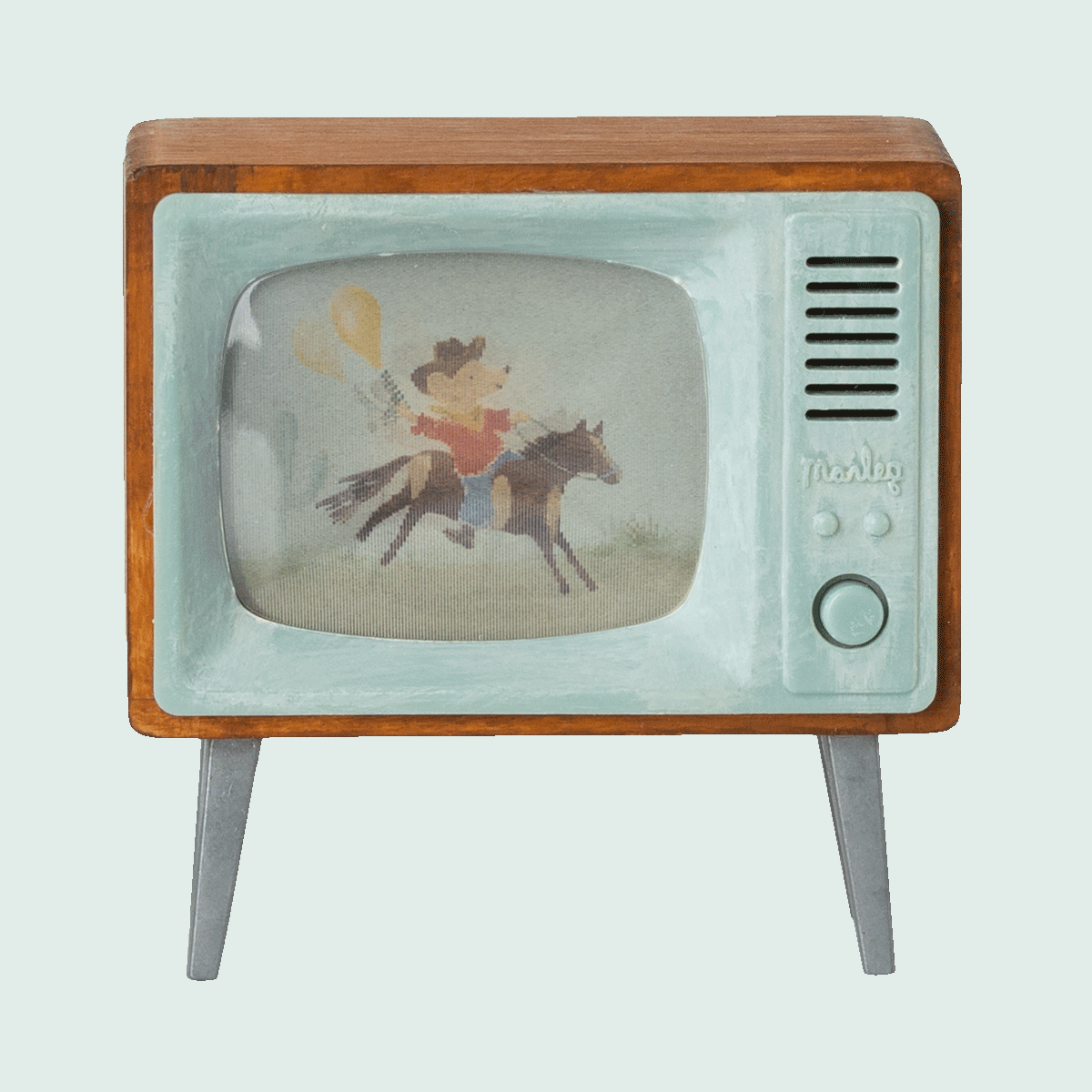 Upgrade your mousehome with a television that can gather the familiy for hours of fun. It brings a cosy touch to the home decor with the beautiful frame made in wood. Let the story begin and imagine what is shown on the screen.