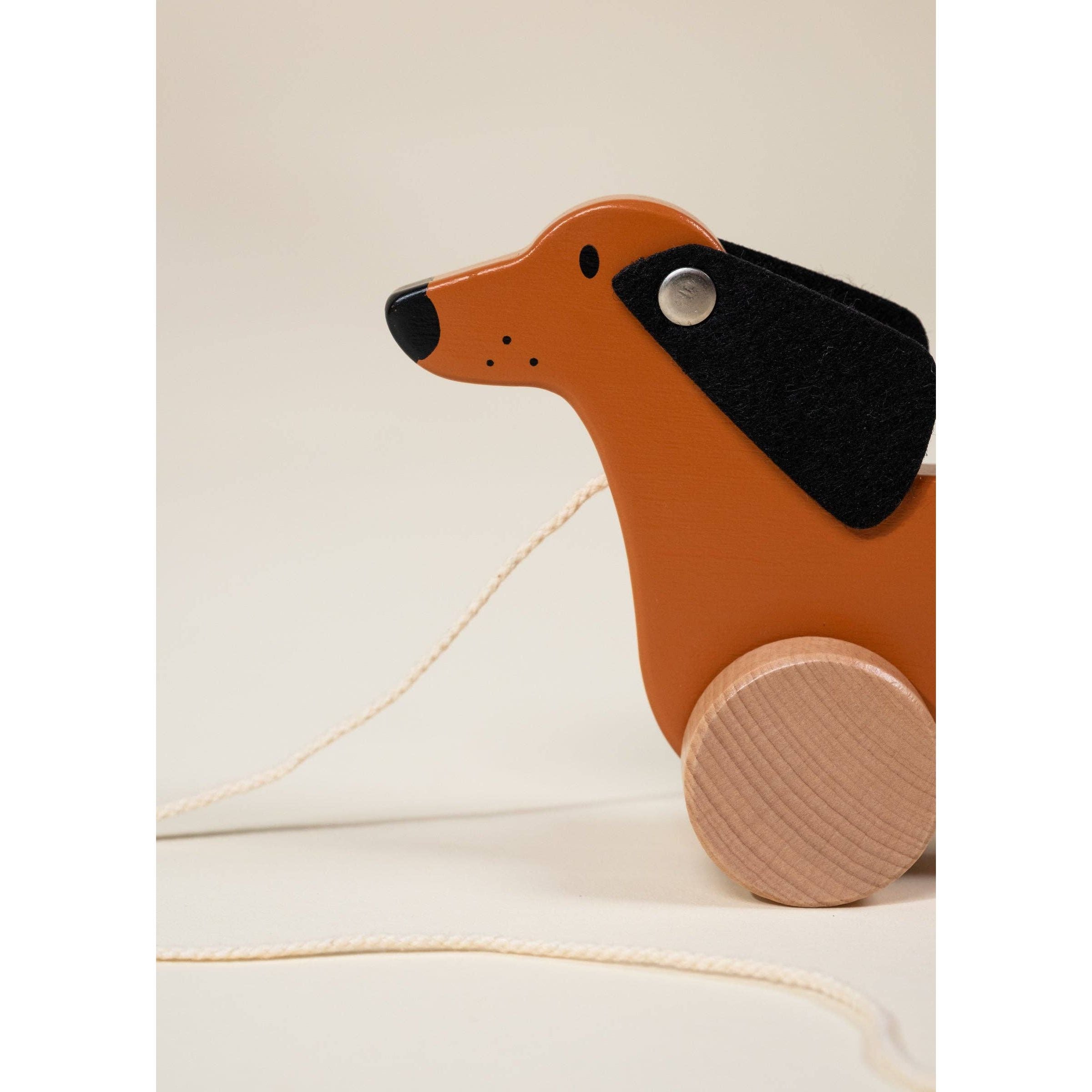 A classic toy, always ready to encourage little steps and spark imagination. This wooden dog pull toy is designed for little walkers — just the right size for tiny hands to grasp and pull along on every adventure. With its playful wobble and gentle movement, it encourages motor skills, balance, and imaginative play. It’s a timeless companion for curious early explorers. Dimensions : 17.5 cm (L) x 11 cm (H) x 5 cm (W)