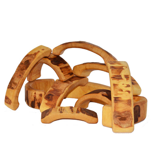 Birkenhof is a social-therapeutic community in Northern Germany where people with disabilities work and live together. "Bikeho" was born in this community! People with disabilities make these beautiful and magical blocks under the supervision of skilled experts. They are designed with the Waldorf principles in mind, they are made of carved alder wood with unique rounded edges which are highly sensorial and appealing to all senses. Every single block is unique in shape and size.