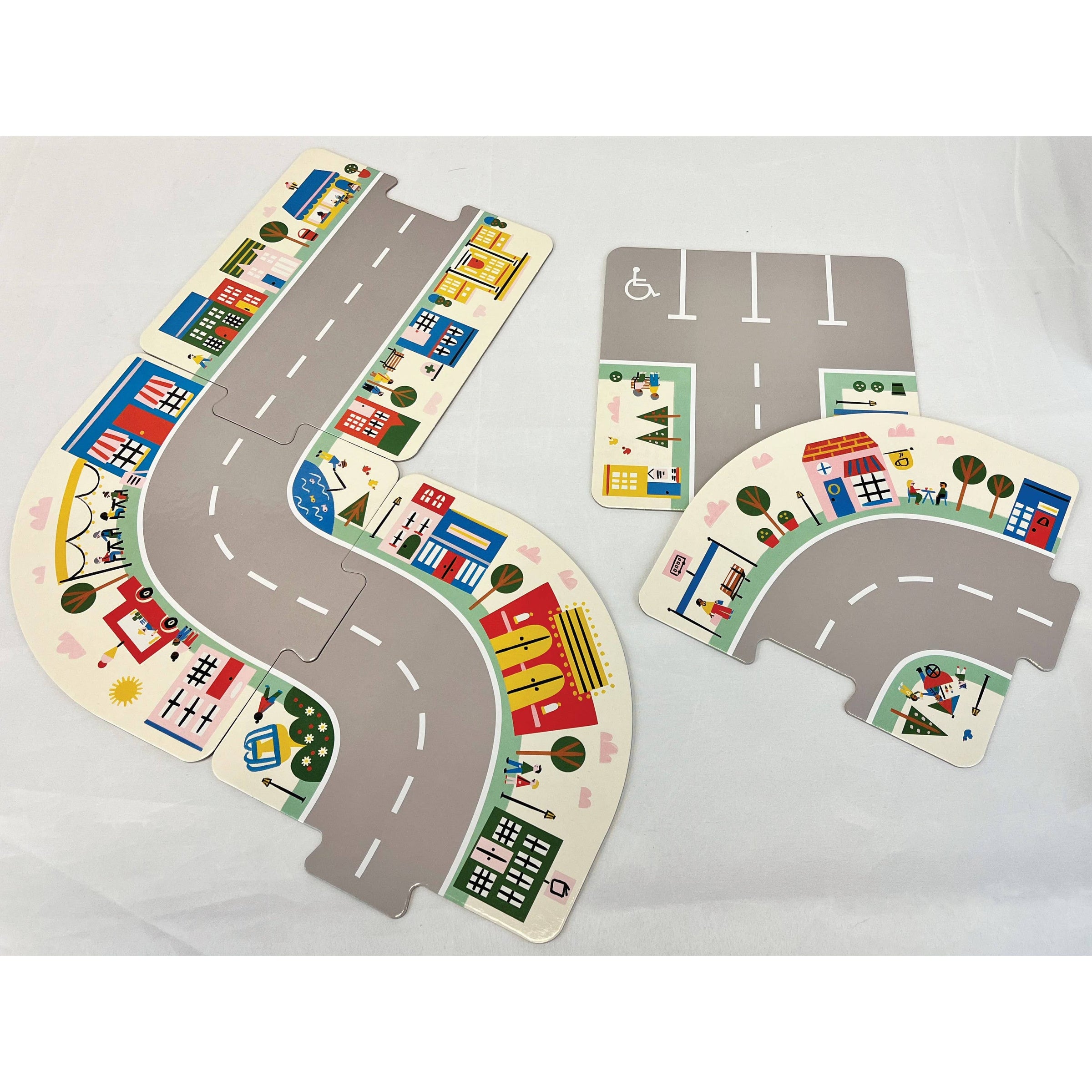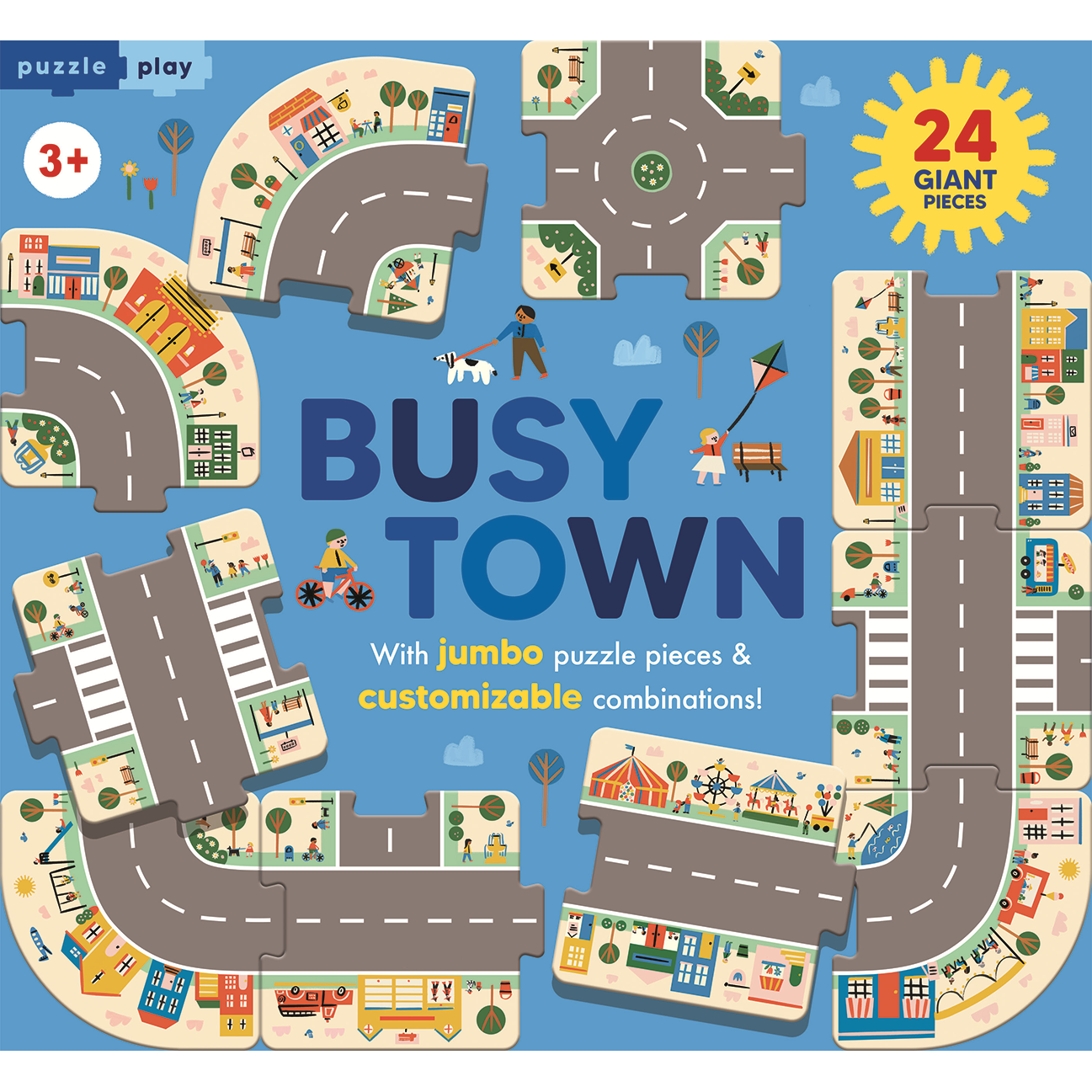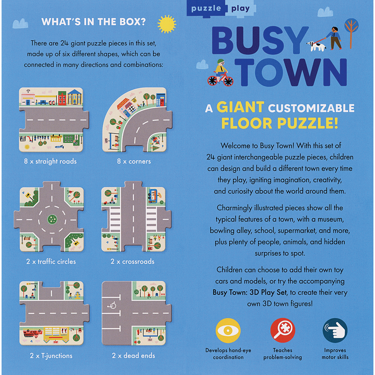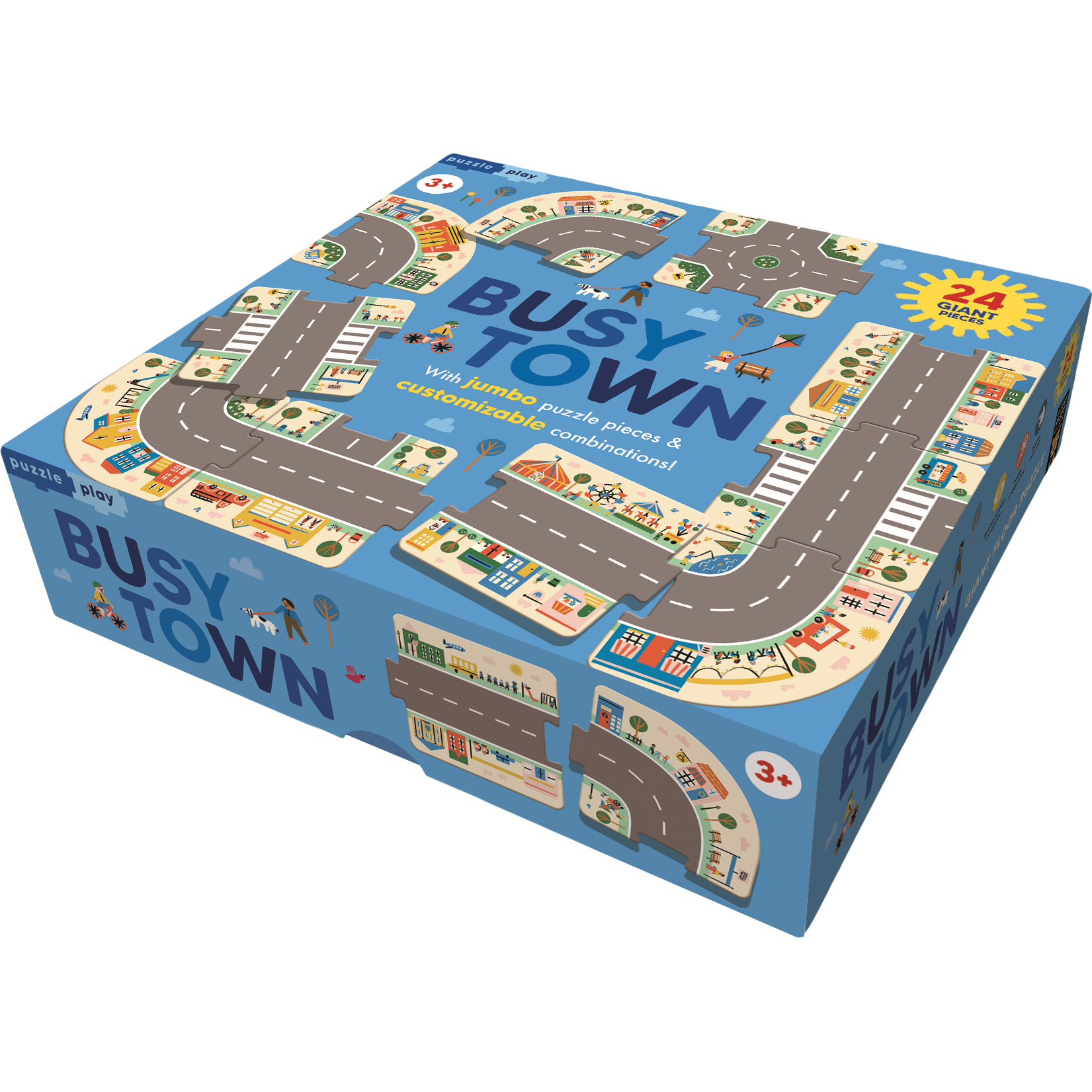 Busy Town brings inspiration to little imaginations! Design a new world every time you play with these 24 interchangeable, double-sided puzzle pieces. (Pictured car and road sign figures from Busy Town 3D Play Set not included.)