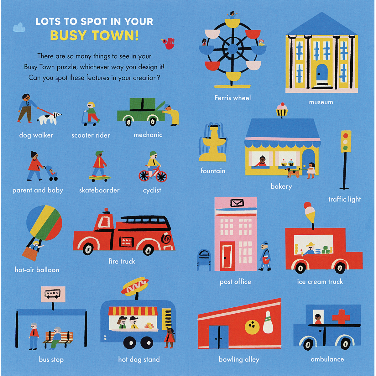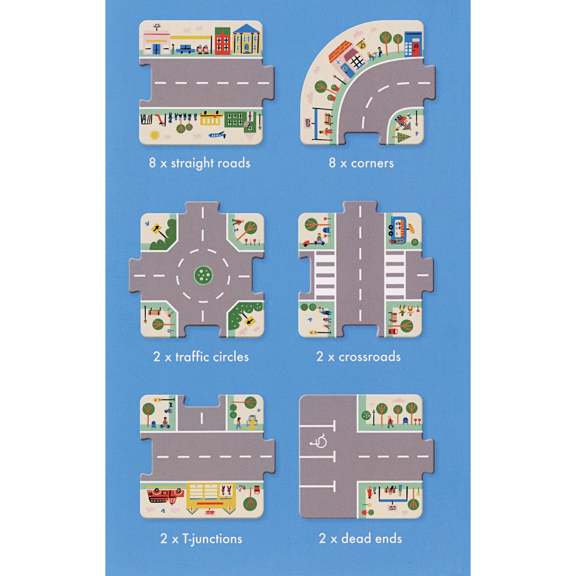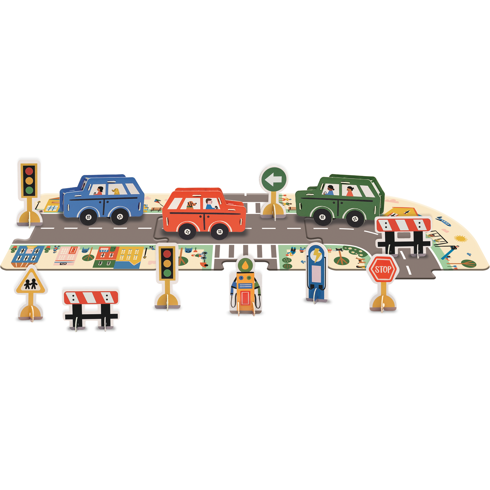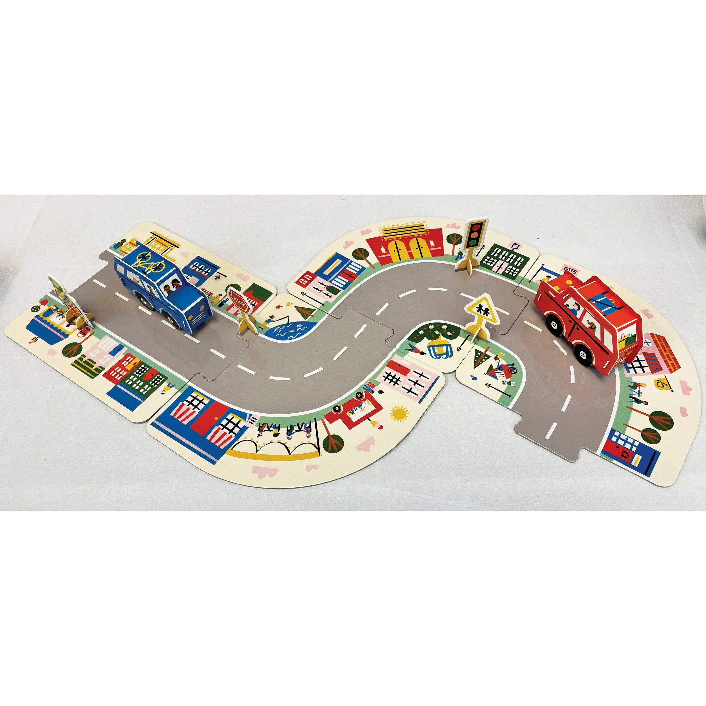 Busy Town brings inspiration to little imaginations! Design a new world every time you play with these 24 interchangeable, double-sided puzzle pieces. (Pictured car and road sign figures from Busy Town 3D Play Set not included.)