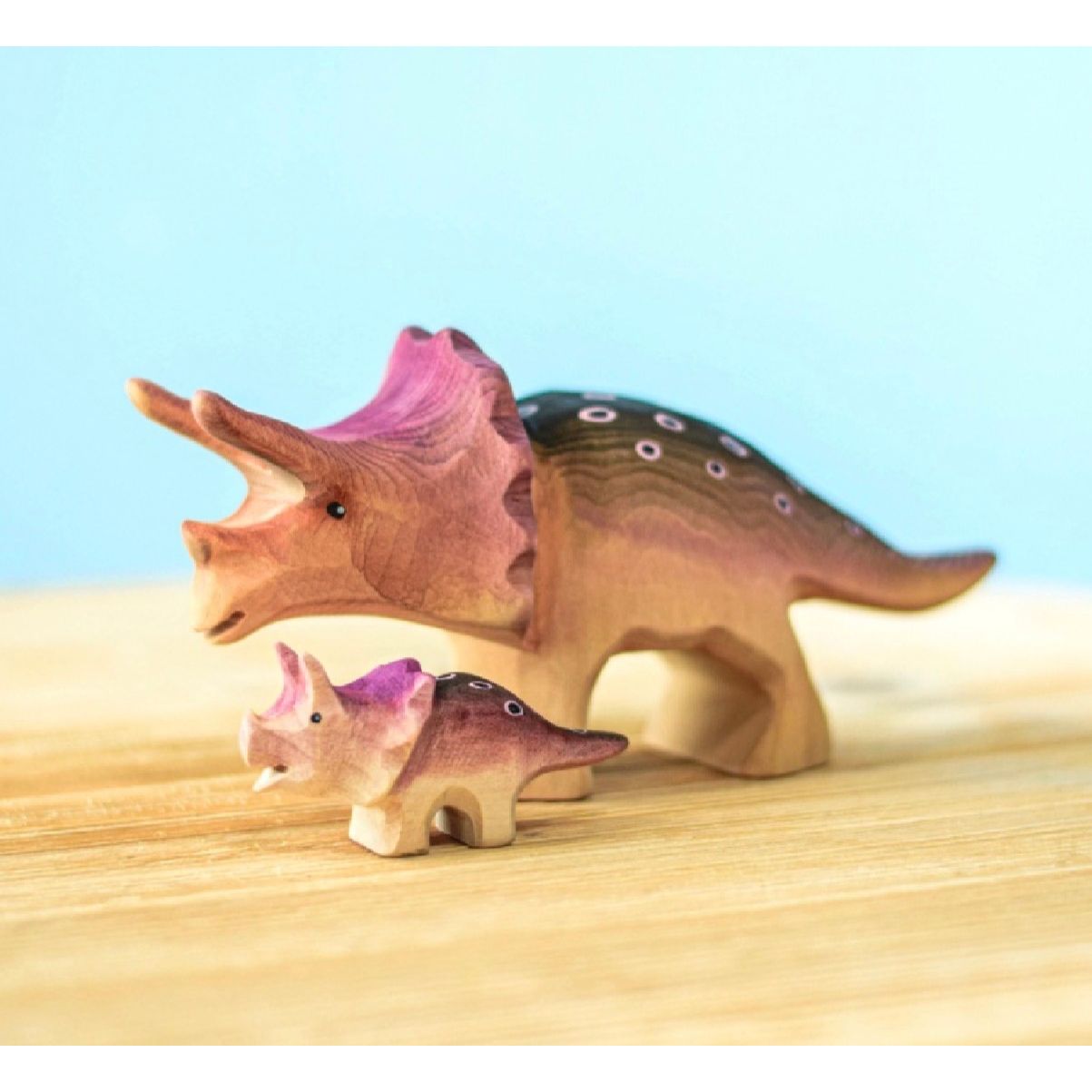 This delightful set includes a beautifully handcrafted adult Triceratops and its adorable baby, both made from sustainably sourced wood and painted with non-toxic, water-based colors.