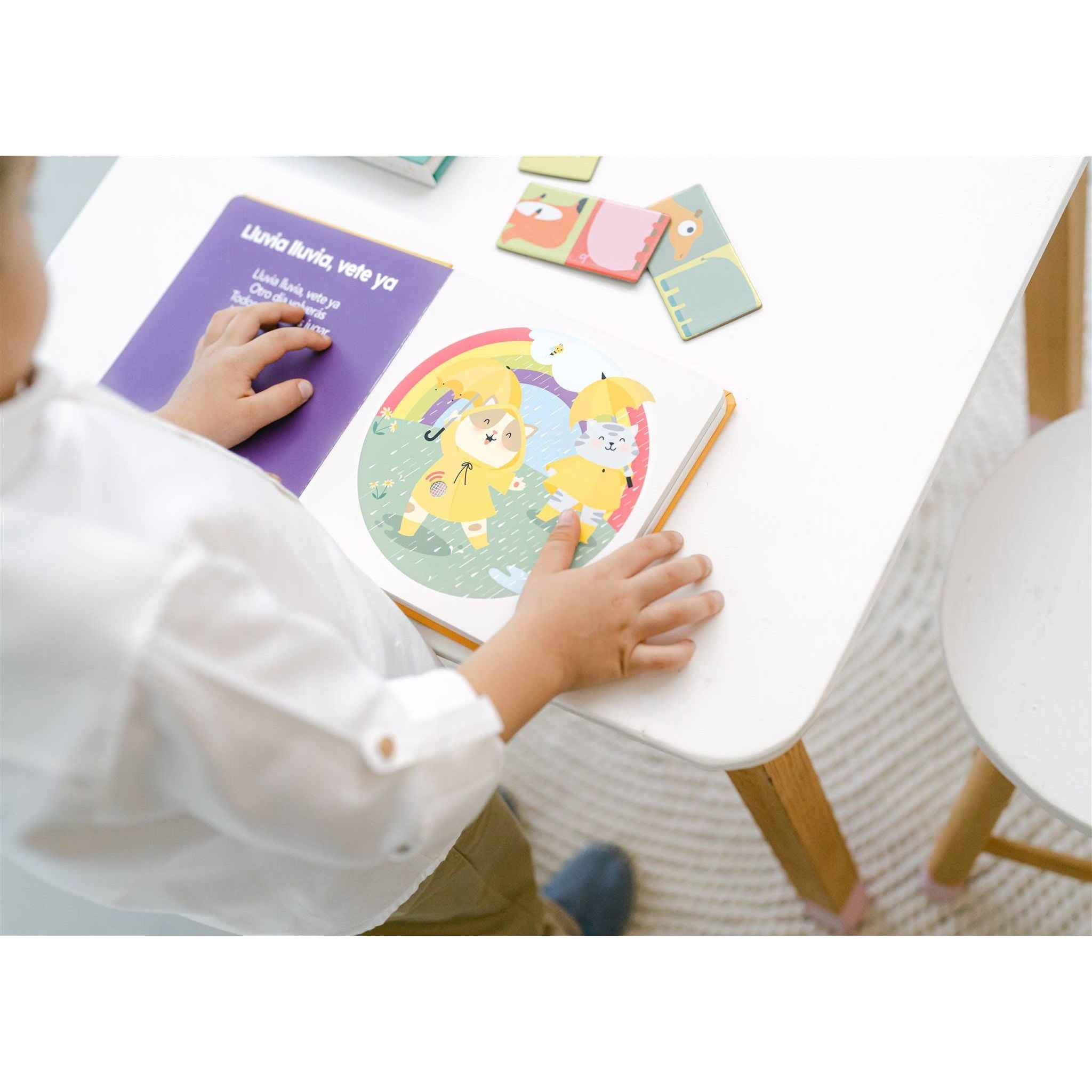 Binibi bilingual sound books are designed to support Spanish learning at home. Featuring beautiful illustrations, easy-to-press buttons & popular Spanish nursery rhymes, our bilingual musical board books make the perfect gift for babies & toddlers. Songs included in this bilingual musical sound book: Sol solecito (Sun, Little Sunshine) Que llueva, que llueva (Rain Rain Go Away) Si tu tienes muchas ganas de aplaudir (If You're Happy and You Know It) En la granja de mi tío (Old MacDonald Had a Farm) Cinco lobitos (Five Little Wolves)