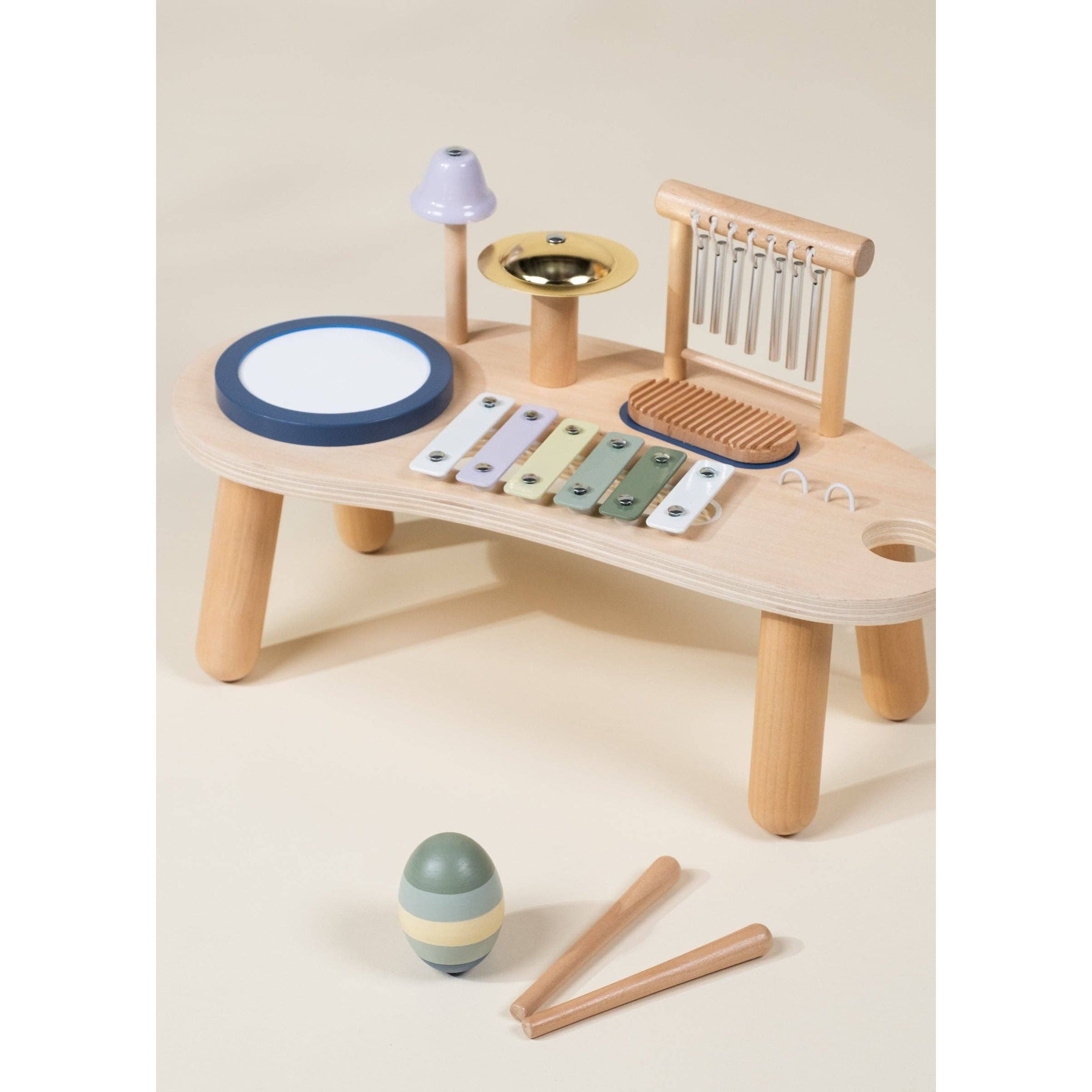 A classic toy, always ready to encourage young learners and introduce the joy of music. Introduce your little one to the joy of music and play with this wooden musical play station. Designed for curious babies, this interactive toy features multiple instruments that develop auditory skills, hand-eye coordination, and fine motor skills — a timeless way to encourage the discovery of new sounds and rhythms.