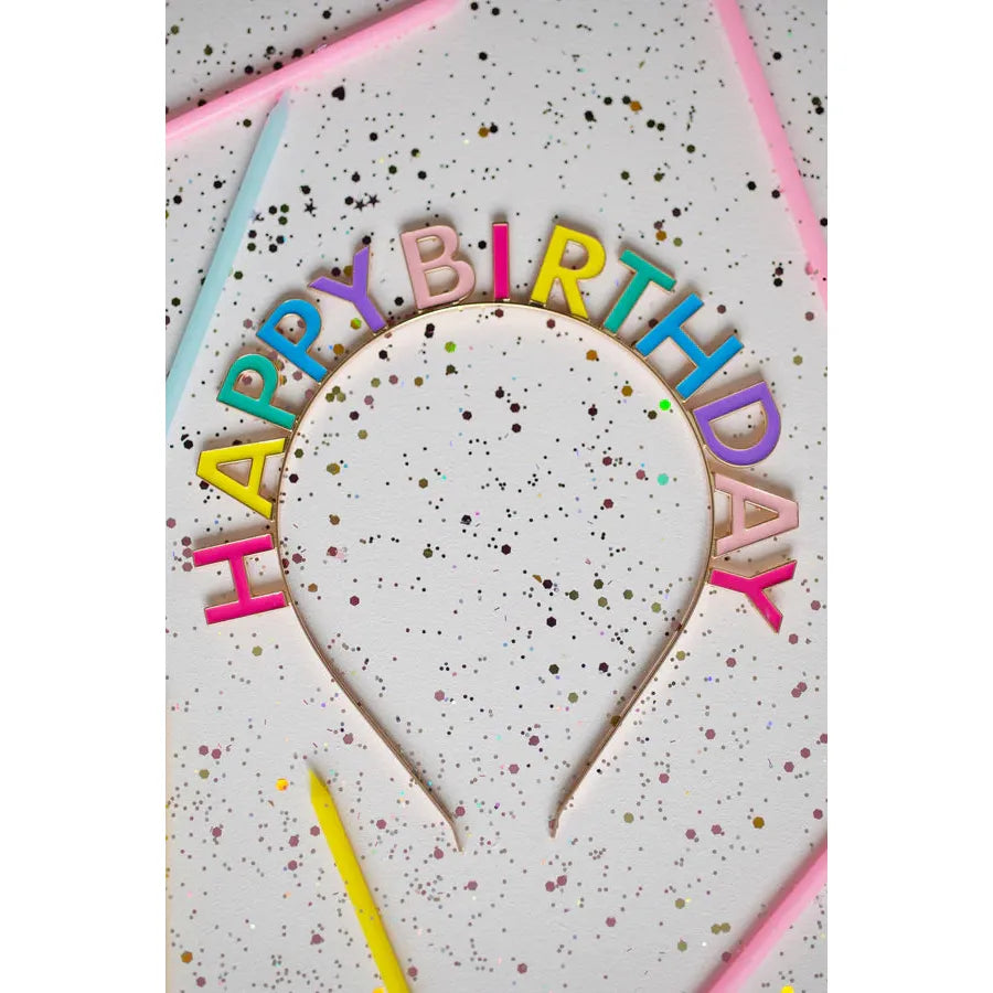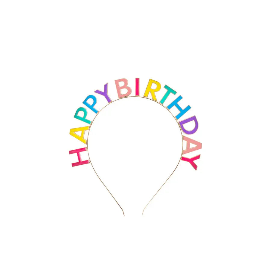 Get ready for your next party with this fun headband! With the words "Happy Birthday" in large multi-coloured lettering, this headband is sure to bring a smile to your face! It makes the perfect accessory for any fun celebration.