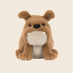 Derreck Dog may be frowning, but he’s really a super friendly fellow! Soft and squat in brown fur, Derreck has an oatmeal tummy perfect for belly rubs! With a grumpy face complete with stitched frown and cream suedette teeth, this darling dog is the perfect social companion to bring a little joy to every journey!