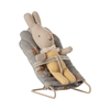 With this babysitter, it is easy to put your little friends to sleep. The base is made of metal and covered by the most lovely fabric. The chair fits my sized rabbits/bunnies and baby mice perfectly.