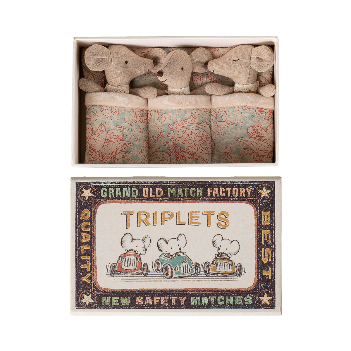 Maileg |Triplets, Baby Mice in Matchbox - Checker | (Ships Early June)