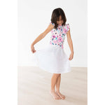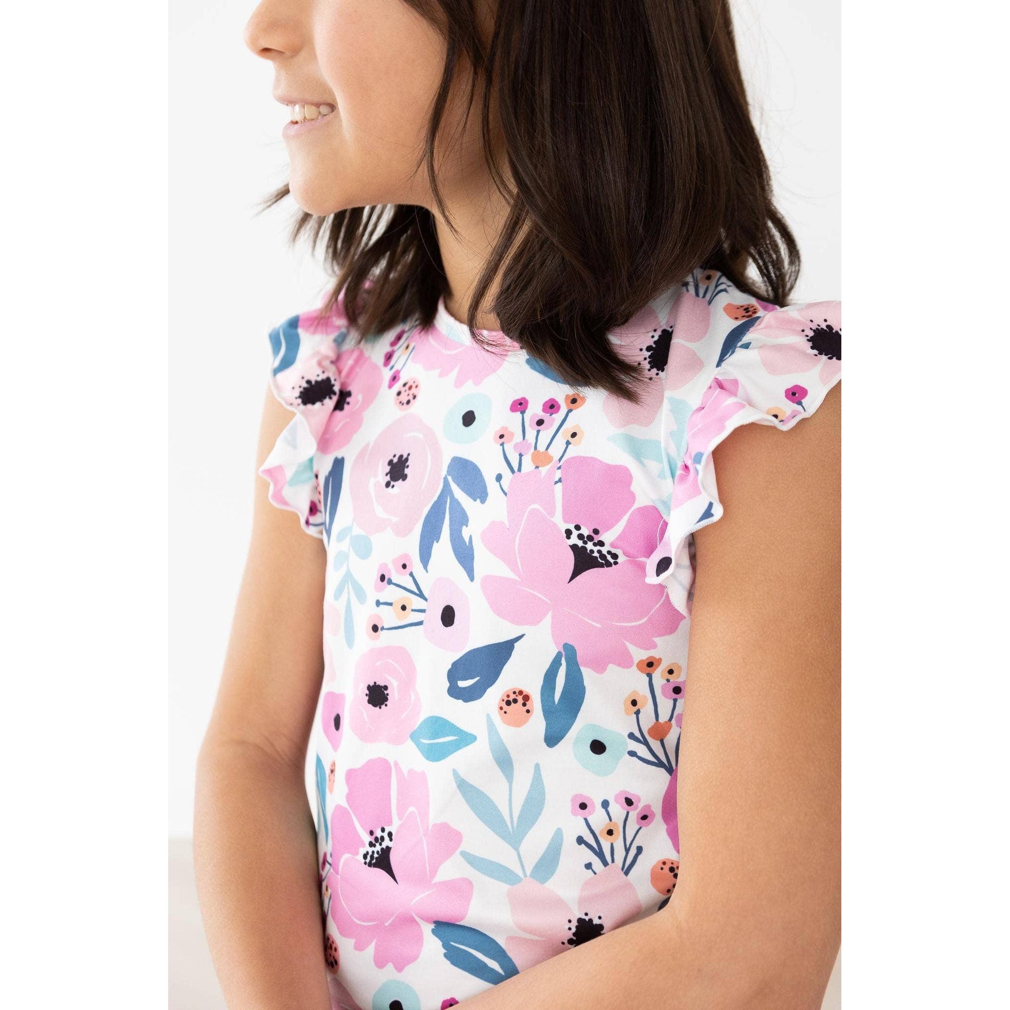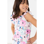 Our founders created the ruffle tee when they could not find the perfect basic tee for Mila. They wanted something simple but still girly. Our ruffle tee is perfect with skirts, shorts, leggings, or layering under pinafores. Mix and Match our Pretty in Purple print collection for sisters, cousins, or BFFs.
