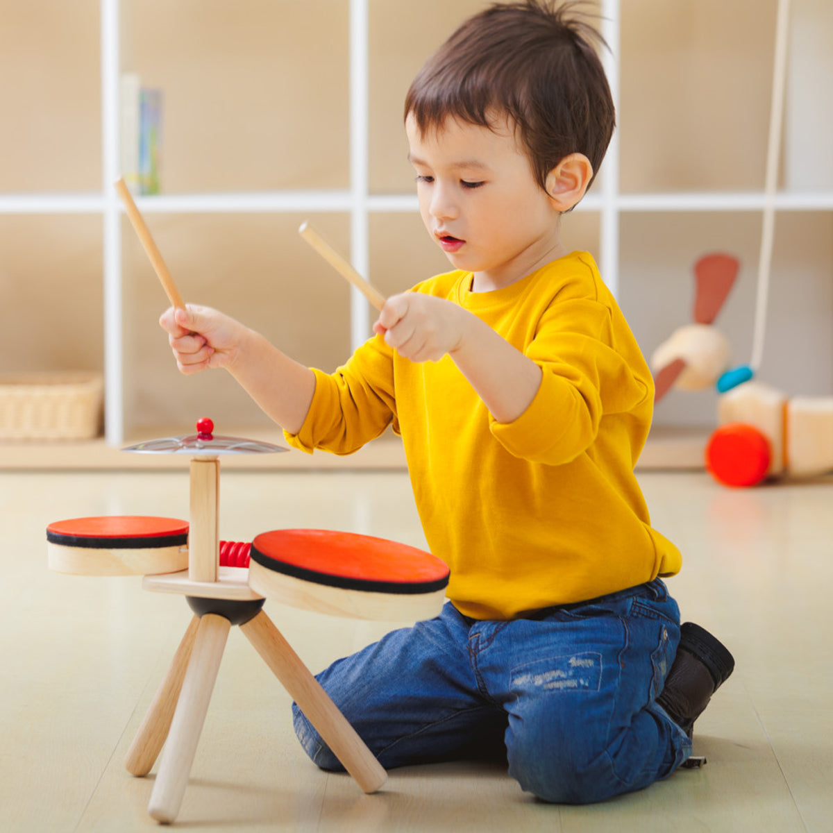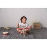 Take center stage with this kid-sized musical set. Musical Band includes 2 sizes of drums, a pair of drumsticks, a cymbal and a guiro. The product is over 13 inches tall.