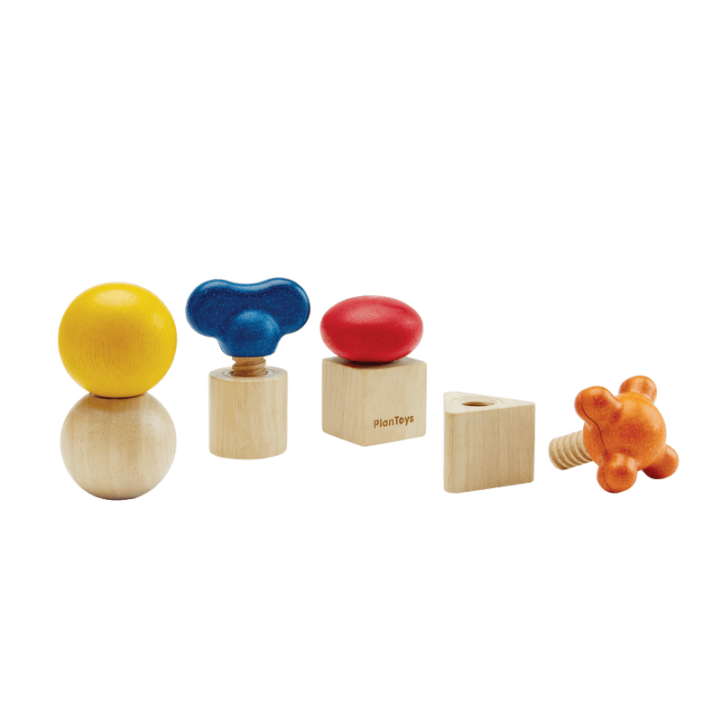 Children can create a variety of small structures with these wooden nuts and bolts. Complete with 4 different bolts paired with geometric nuts, kids can incorporate the pieces into other construction or mechanical play environments. While they grab, twist and sort the pieces, hand-eye coordination and fine motor skills are stimulated.