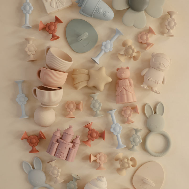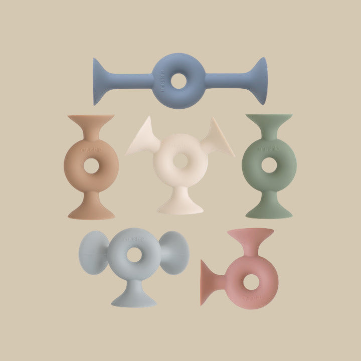 Unleash creativity and fun with this set of 18 silicone suction builder toys. Made from flexible, non-toxic silicone, the pieces easily connect, stack, and stick to smooth surfaces for a versatile toy during play time or bath time. Ideal for fostering motor skills and spatial awareness with endless opportunities to explore and create. When playtime is over, they neatly store away in a reusable storage container that keeps everything organized and ready for the next creation.