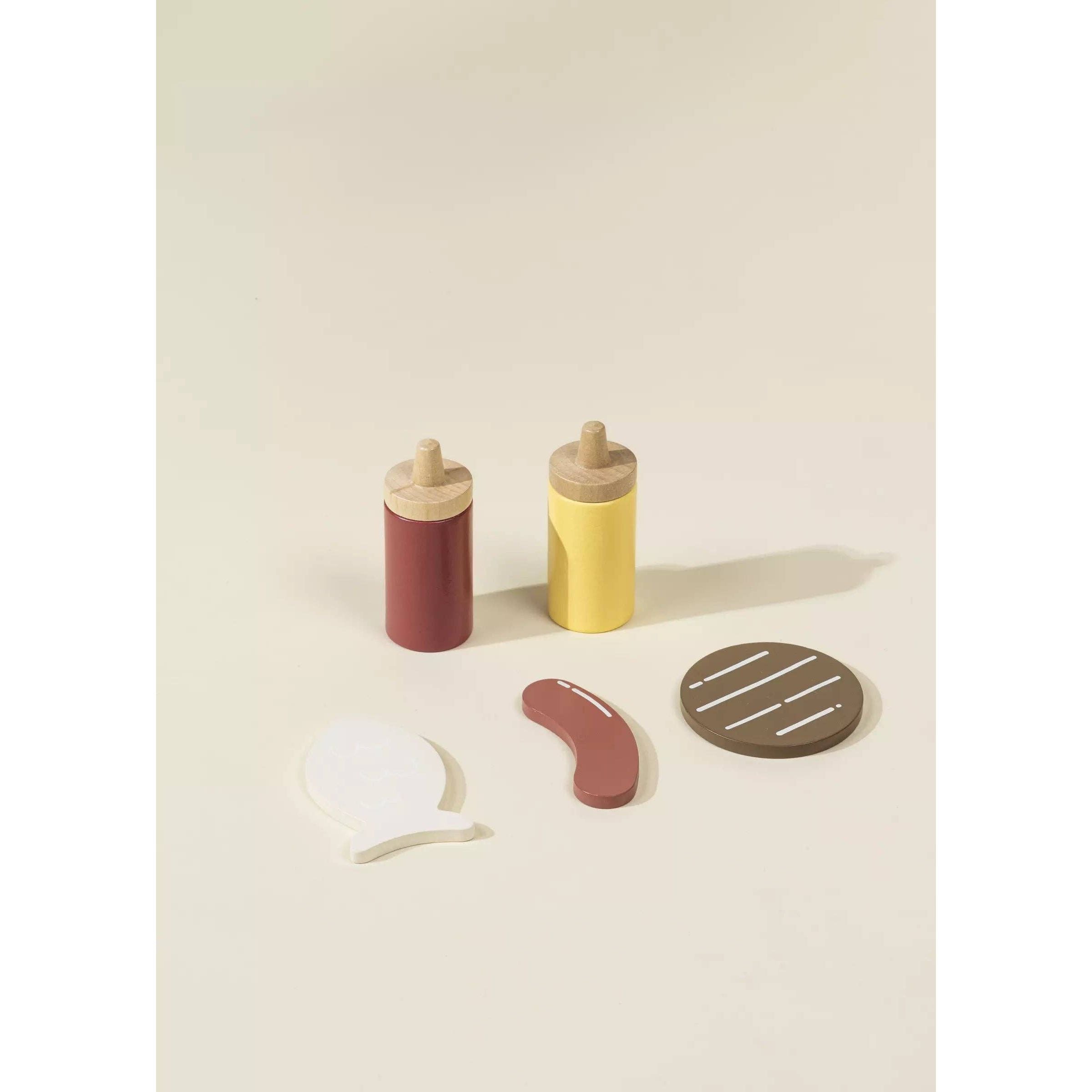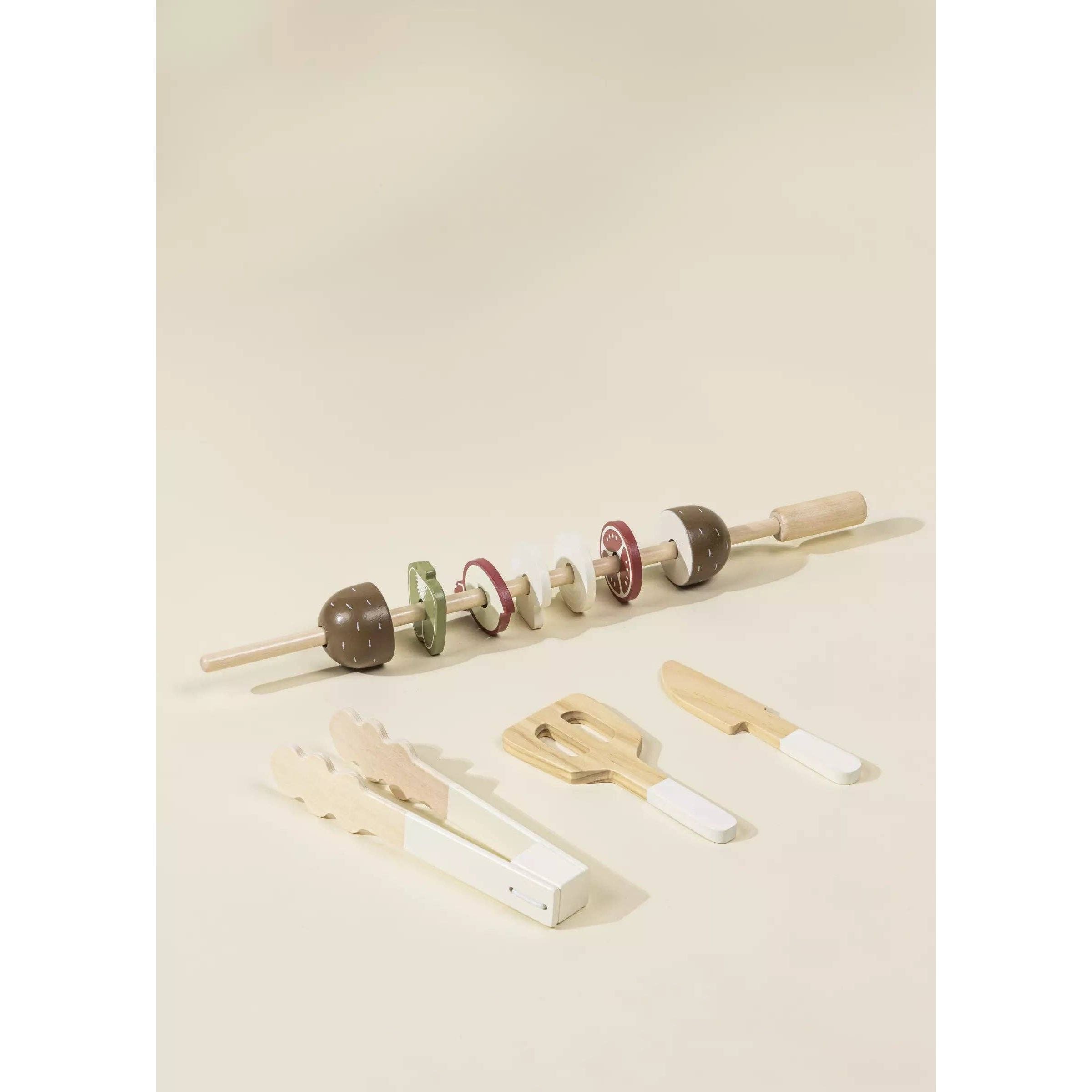 The Barbecue Set includes: * Tongs * Spatula * Knife * Skewer * Ketchup * Mustard * Bell pepper * Tomato * Radish * Onion * Mushroom * Potato * Sausage * Meatball * Fish DIMENSIONS * Length: 13'' (34 cm) * Height: 12'' (30 cm) * Width: 9'' (23 cm) FEATURES * Ideal for ages 2+