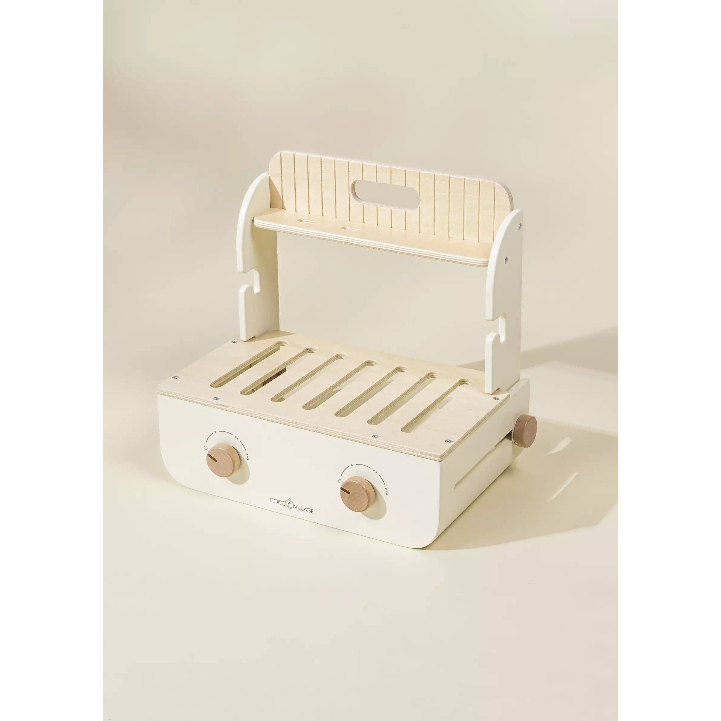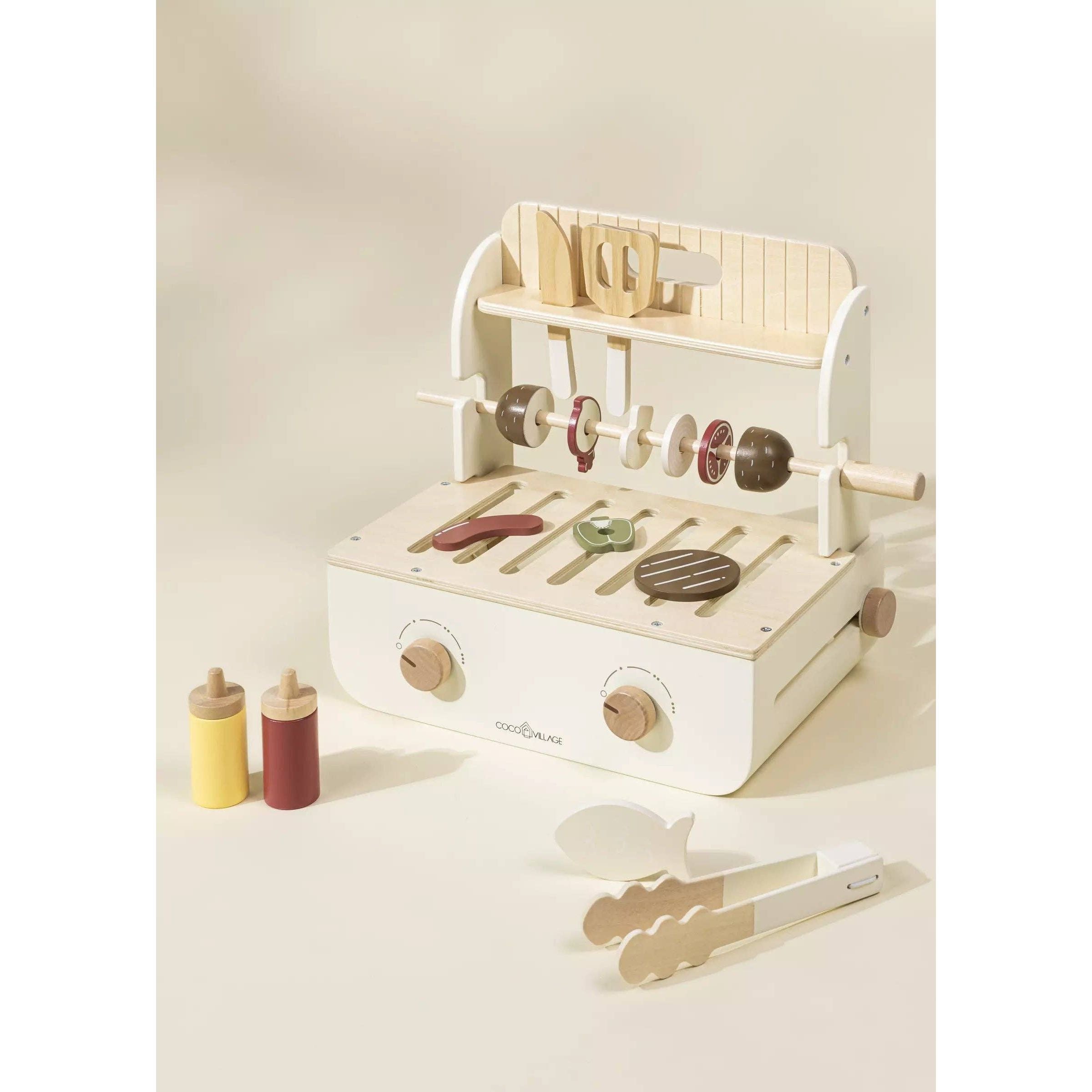 This wooden toy represents an ADORABLE portable barbecue. Crafted with high-quality wood, it provides an entertaining and safe play experience for little ones! The Wooden Barbecue Playset comes with colorful accessories such as a skewer, meat pieces, and vegetables. This toy allows children to mimic the actions of adults while fostering their creativity and motor skills. Compact and easy to handle, this barbecue is the perfect companion to encourage role-playing and stimulate the imagination of toddlers.